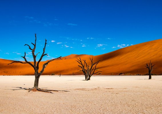 The morning demands an early start. Entering the Namib Naukluft National Park with sunrise, the first rays of sunlight paint the mountains of sand into a variety of apricot, red and orange, contrasted against a crisp blue skyline, enrapturing your senses, and providing an opportunity to capture this awesome landscape on film. You will be captivated by the surreal Deadvlei surrounded by some of the highest dunes on earth and Sossusvlei, where the dry Tsauchab River ends abruptly amongst dunes. Take the opportunity to walk up one of these majestic dunes to admire the desert landscape beneath. Thereafter you will visit the Sesriem Canyon, a life sustaining natural phenomenon in the heart of the Namib Desert.