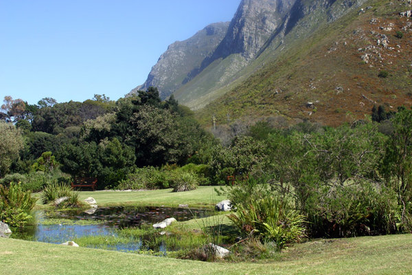 This beautiful, secluded garden is set between mountain and sea, in the heart of the Cape fynbos region and encompasses 10 hectares of cultivated fynbos garden and 190 hectares of pristine natural fynbos. Situated in the centre of the coastal fynbos where the flora is at its richest, the garden encompasses mountain slopes with their wind-clipped heathlands, deep gorges with relict forests, flats and marshes with restios, sedges and bulbs, as well as dunes adjacent to the beach with their specialised salt-adapted plants. The garden is renowned for its waterfalls and amber pools. The main fynbos families (proteas, ericas and restios) are present as well as other important families such as irises, daisies and orchids.